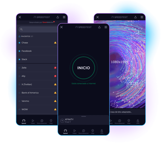 Nuestro objetivo en Speedtest by Ookla® es proporcionar datos e información relevante sobre velocidades reales de Internet para que la velocidad de Internet sea mayor. Hemos ejecutado miles de millones de pruebas en todo el mundo y estamos donde nos necesite con aplicaciones para los dispositivos que más usa.